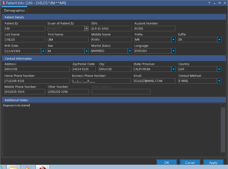 Here any information about the patient can be viewed and edited. Once you are finished click OK to save the changes.