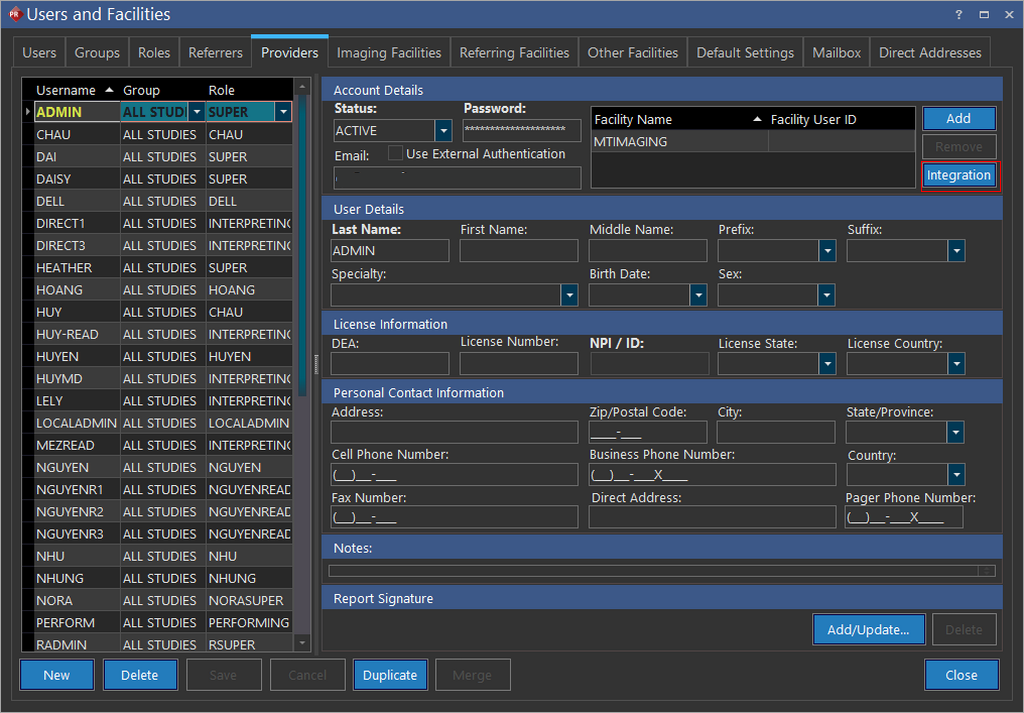 From the Integration drop-down menu, select PowerScribe and enter the login credentials for PowerScribe account.