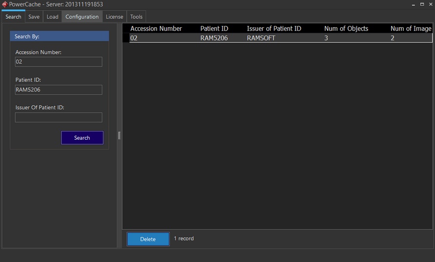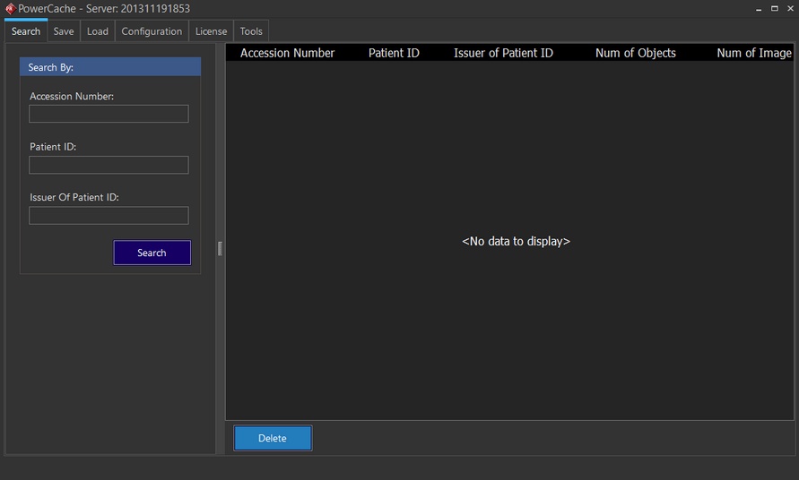 Type in the Accession Number, Patient ID and/or Issuer of Patient ID boxes to search for a particular cached study.