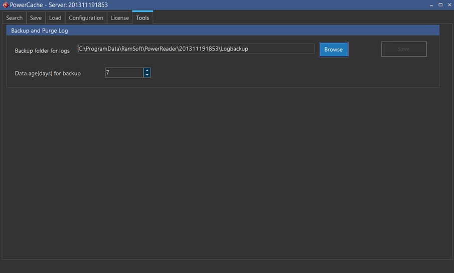 The Tools tab is used to specify the backup folder for the cache logs and the days of data to keep the backups.