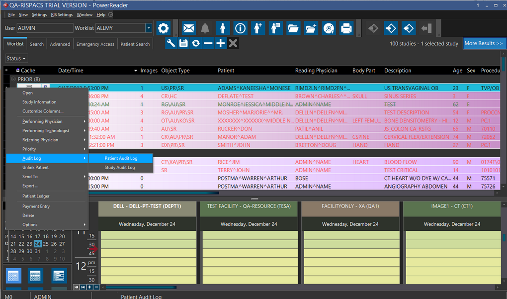 2. Right click on the triangle and choose Audit Log > Patient Audit Log as shown below.