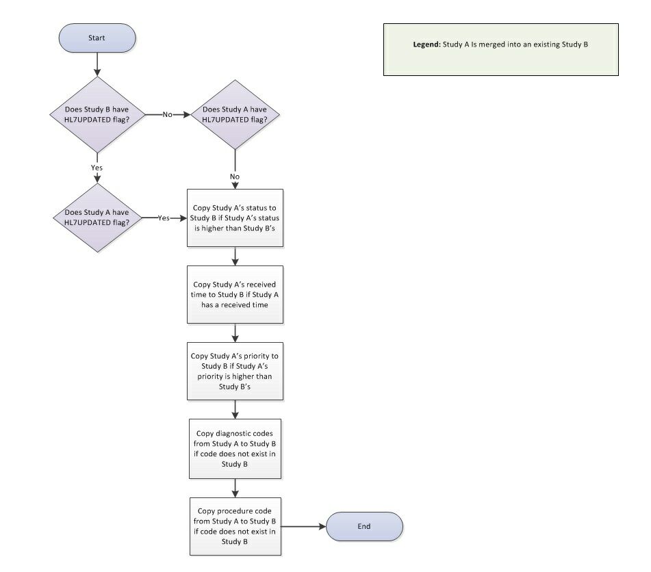 - If HL7 information has been updated for Study B but not for A, series from Study A is added to B. The information of Study B is kept; information from A is discarded.