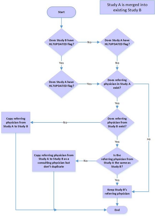 If both Study A and B contain different Referring Physicians, the Referring Physician from A is added to the list of physicians in B. The name of the Referring Physician from B is kept.