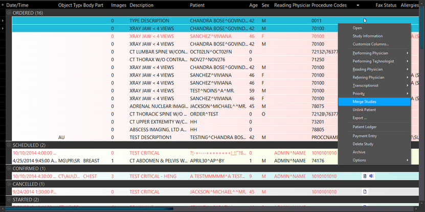 It is often desired to merge two studies of the same patient. This might be due to the fact that a study is identical to another study in the system and hence the both must be merged together. In this situation, it is possible to merge the two studies via the Worklist right-click menu.