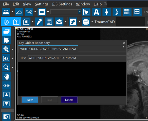 The Key Object Repository is used to summarize the most important objects of a study in one place. Any object placed in the Key Object Repository becomes a Key Object. These objects are always displayed first when a study is opened and can come from different series.