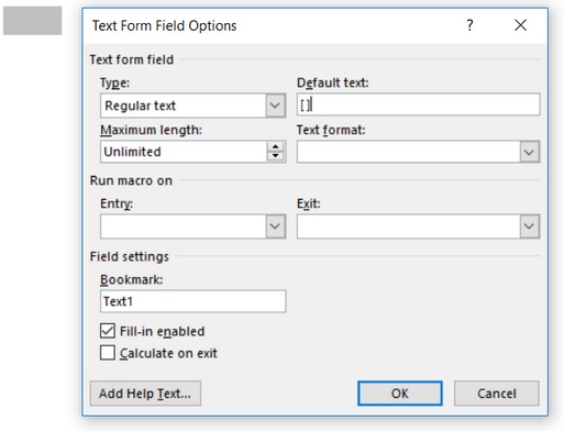 Step 5: Double-click the new field to change "Default text" to "[ ]"