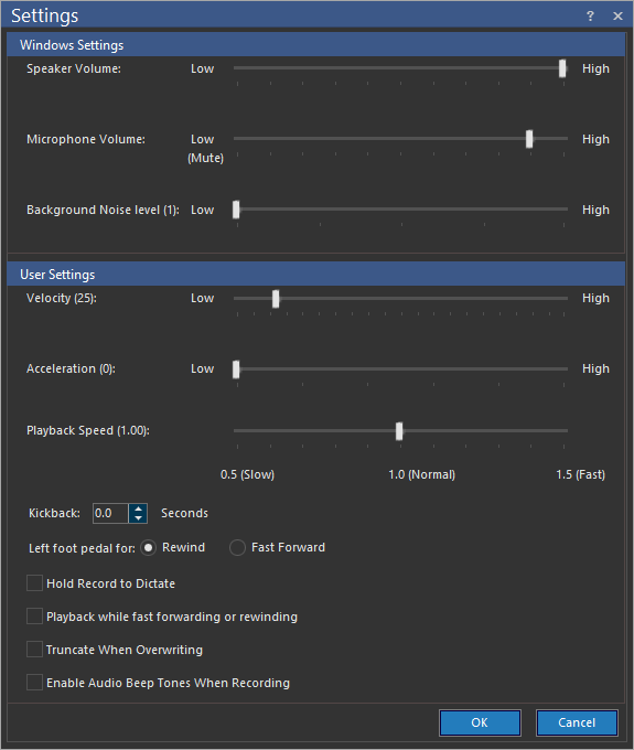 | Playback while fast forwarding or rewinding | With this option, you could hear the playback in fast motion while the dictation is re-winded or fast forwarded. |