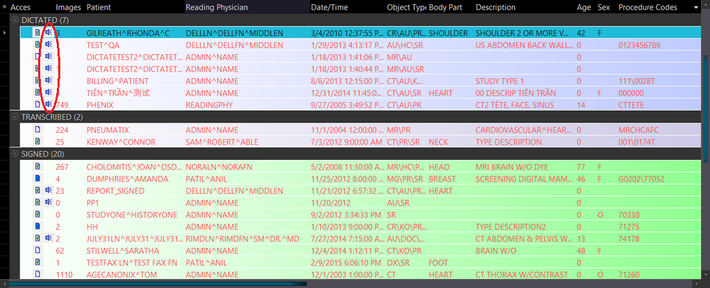 Note: Dictations are displayed under Series Information as series with "AU" (audio) modality. Series Description display is limited to 16 characters.