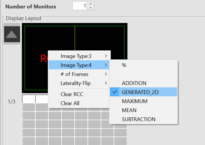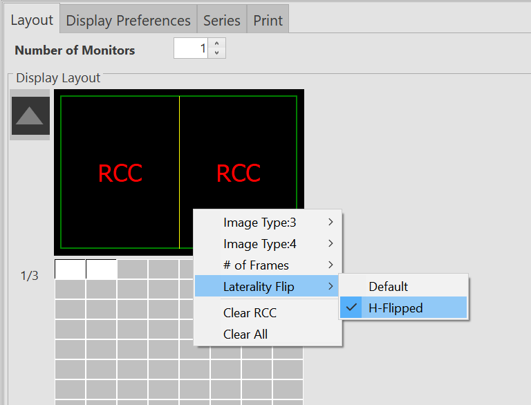 Viewing Protocols can be set up for different image types. 3D Tomosysnthesis images can be identified as Multi frame images and 2D synthesized images are identified as Single Frame images by default. You can assign the number of frames for any of this image types by selecting the # of Frames option from the right-click menu on the Display Layout section.