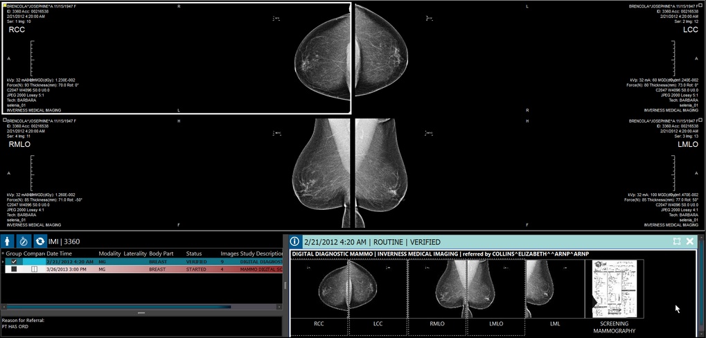 MG studies are labeled as LCC, LMLO, RCCID, RMLO, etc.