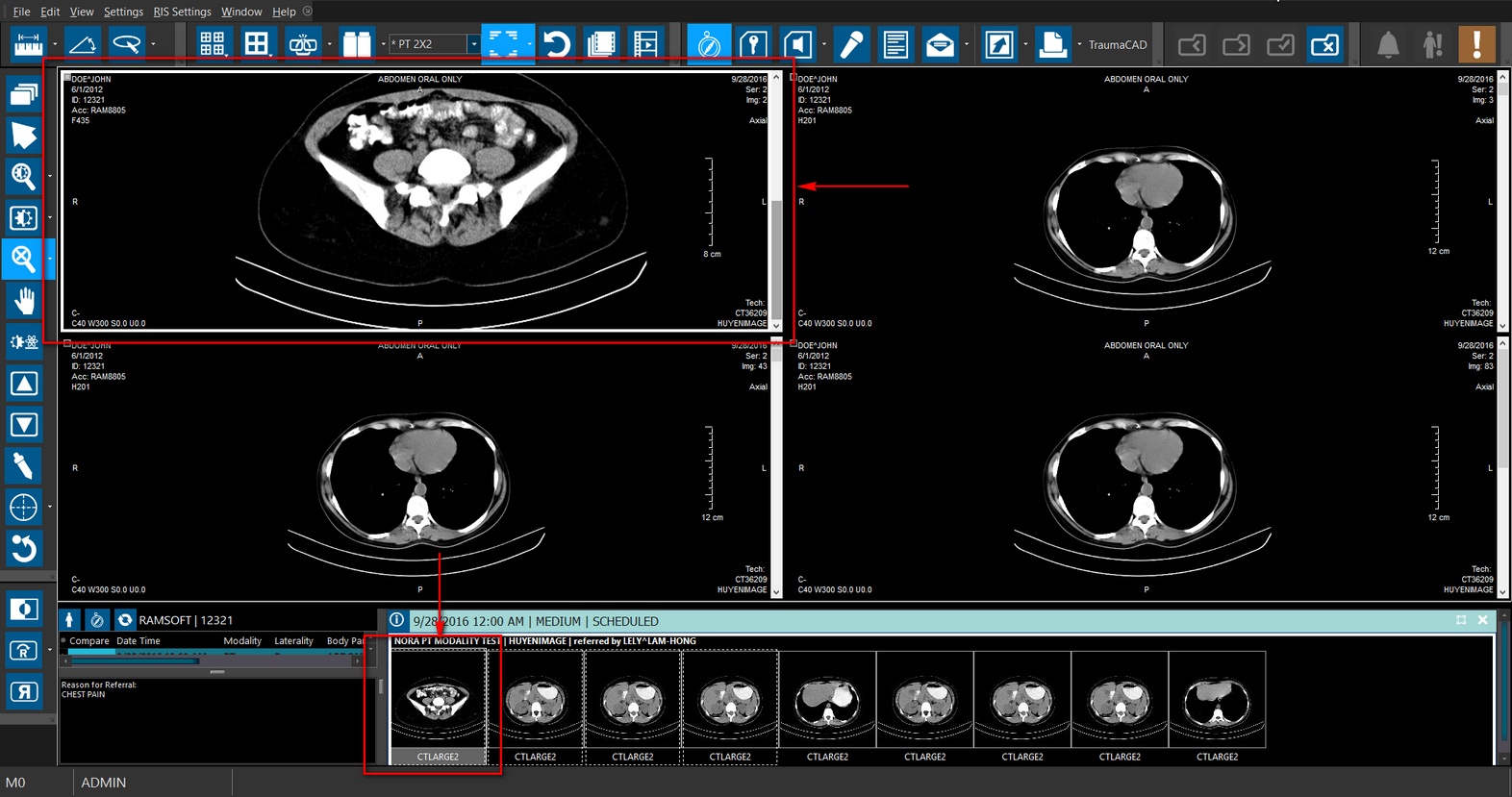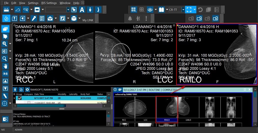 You can now display multiple thumbnails for all the studies without loading the actual images on the Image viewer. You can see that the thumbnails window loads all the thumbnail images for the listed studies along with any priors.