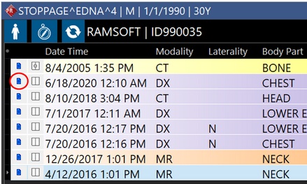 Locate the series thumbnails for the study that you want to see its study documents, click on the document icon on top of thumbnails.