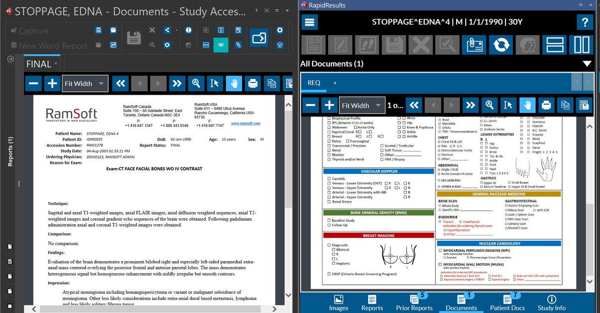 Study documents displayed in RapidResults in a window that could be resized & moved to your preferred location on your desktop. For example, you can move it to a secondary monitor to view it side by side with current study's document viewer: