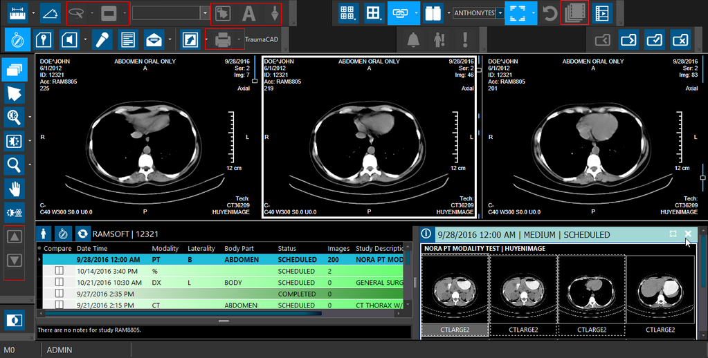 When in remote rendering mode, you have limited access to tools on the image viewer toolbar. The tools highlighted in red in the following screenshot are not available when images are loaded in remote rendering mode.