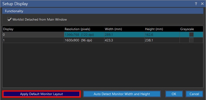 The last option, at the bottom left of the screen, applies the Default Monitor Layout. Clicking the Apply Default Monitor Layout achieves the following: