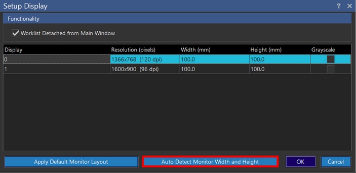 Click the "Auto Detect Monitor Width and Height" button and click "Yes" to allow the Width and Height values to be modified by the system. These values can still be overwritten by manually typing into the boxes.