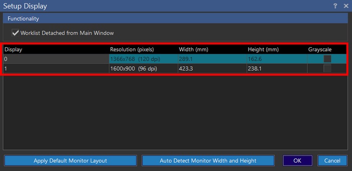 The Grayscale option toggles the selected display between color and grayscale modes. Note that grayscale rendering will be approximately 30% faster than color mode.