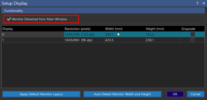 Sets the Worklist Detached from Main Window checkbox to "checked" status, and: