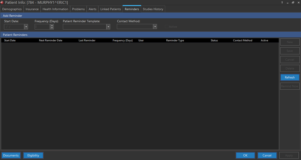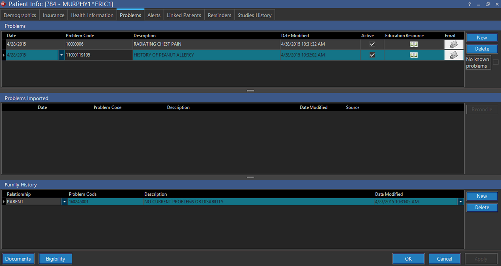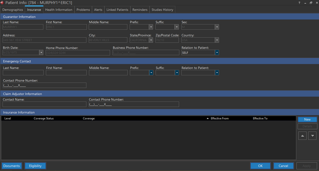 See section Insurance Tab for more information on this feature. 'Insurance Information Section' shows all of the insurances associated with patient including Active, Expired and Future as Coverage Status.