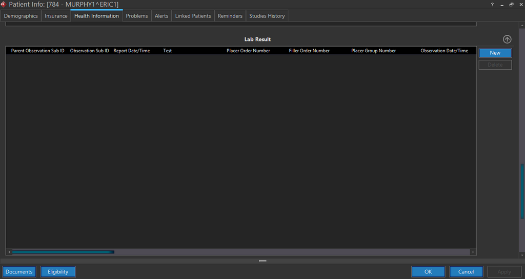 This form can be found by clicking on the View Patient Information icon in the toolbar on the Worklist or Search screen.