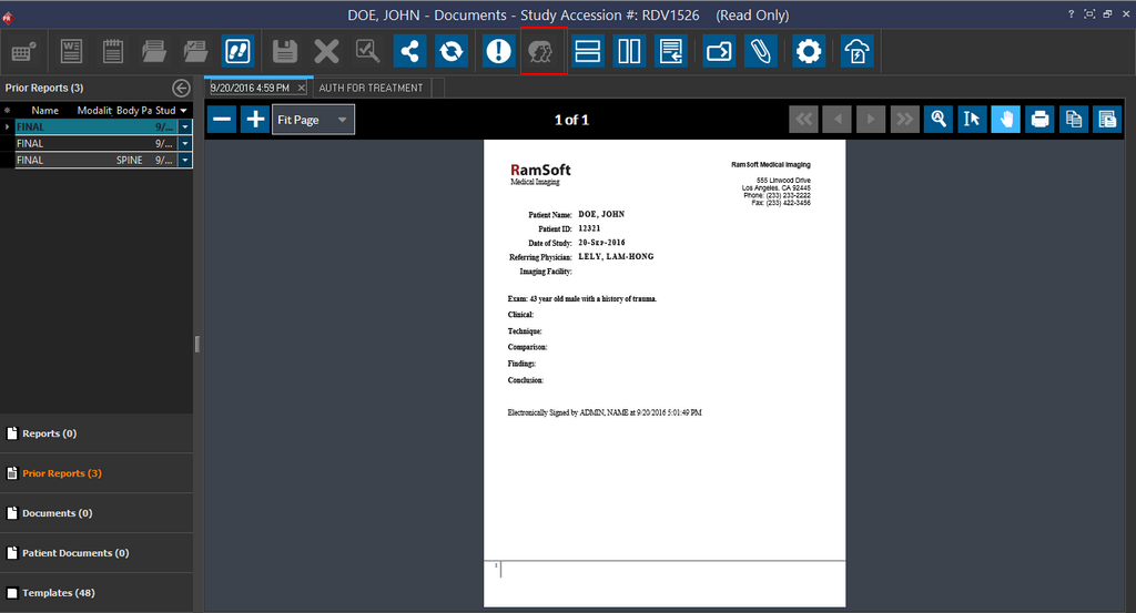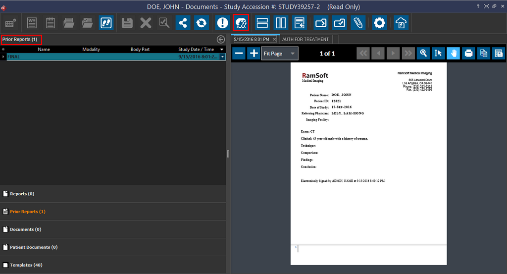 - The user is viewing a Prior Final Report AND the user is not the assigned person for the Prior Study, AND the Prior Study has not been Peer Reviewed.