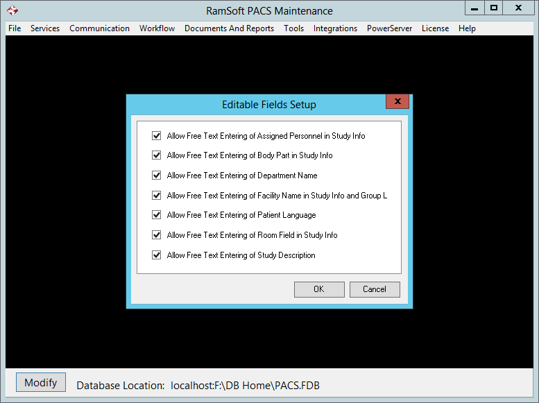 If the Allow Editing of Body Part in Study Info option is unchecked, it prevents users from making changes to the Body Part field in the Study Info form.