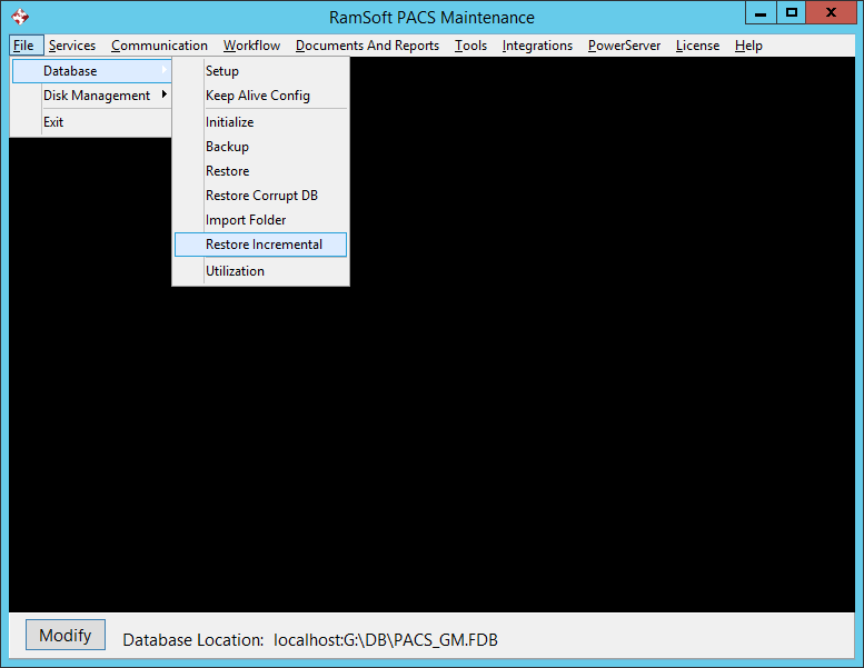 If the database has been corrupted for some reason, the following steps can be performed to restore the database file from the Incremental backup. To restore from the Incremental backup, perform the following steps: