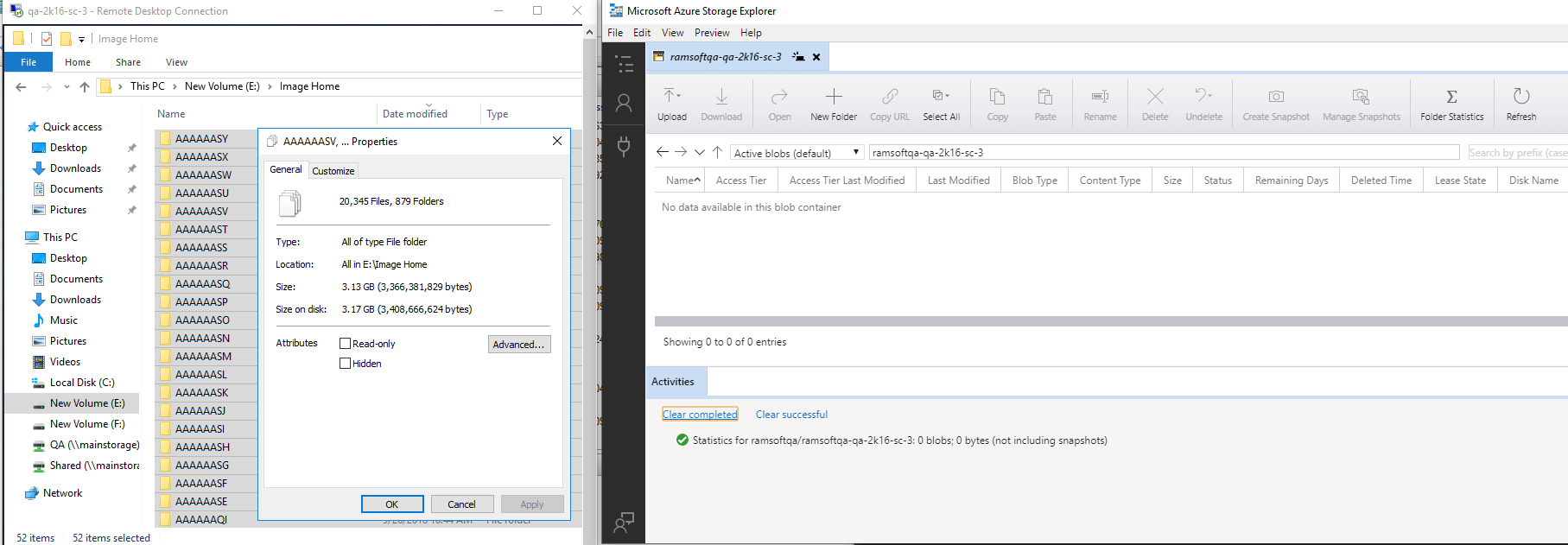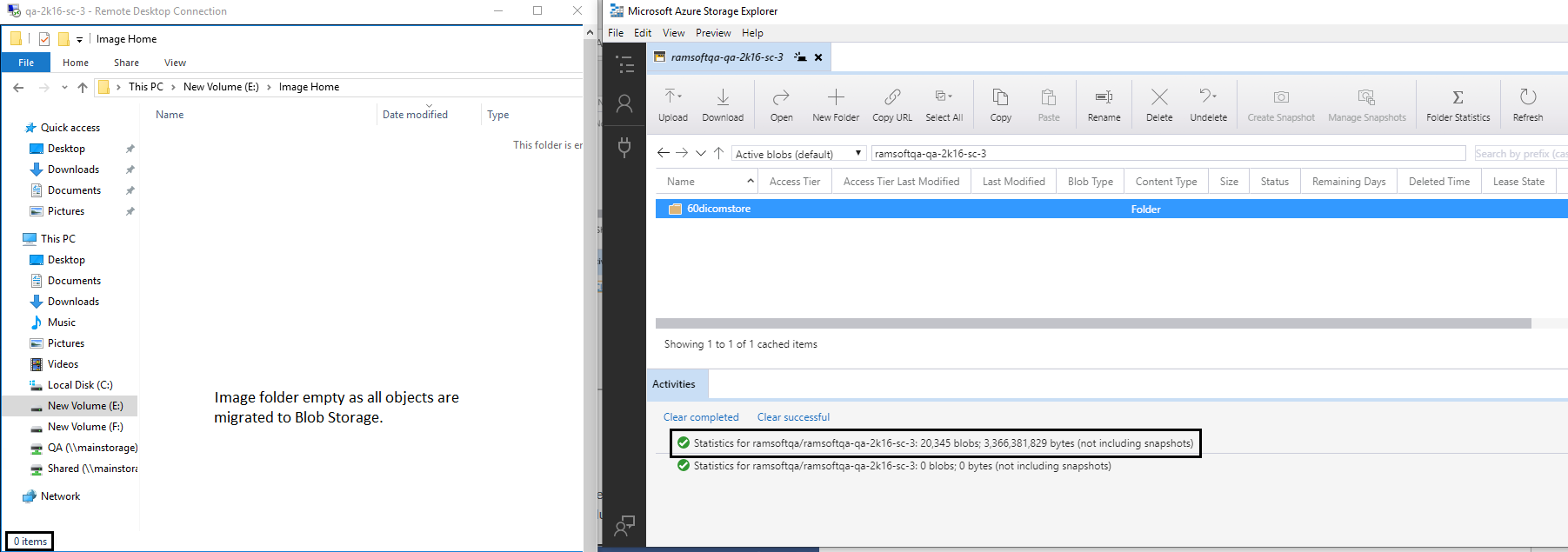 Using Azure Storage Explorer, check that the objects are migrated from the Disk (Image Folder) Volume to the Blob (Storage) Container. See screenshot below.