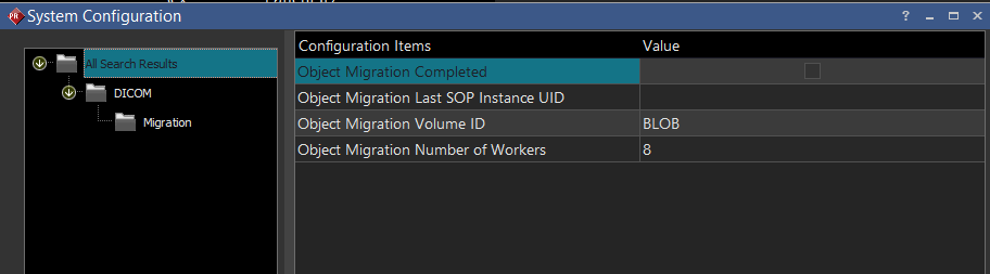 - 'Object Migration Volume ID' should be set to the Volume ID (e.g. BLOB) for all objects to be migrated to (string)