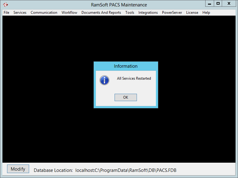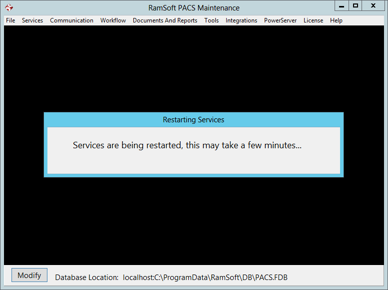 Once the Restart option has been chosen, the services will restart. This may take a few minutes.
