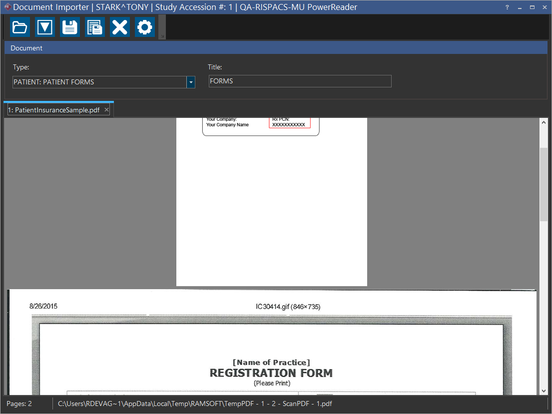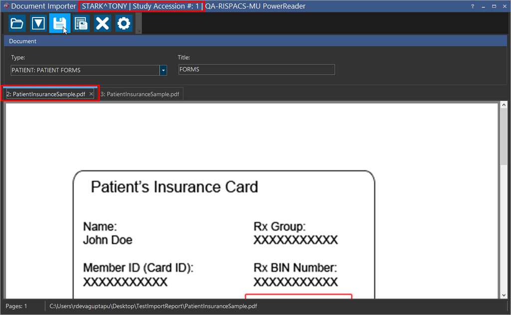 Now Drop the tab. You can see that both the documents are now merged. The PatientInsuranceSample.pdf now has the appended document.