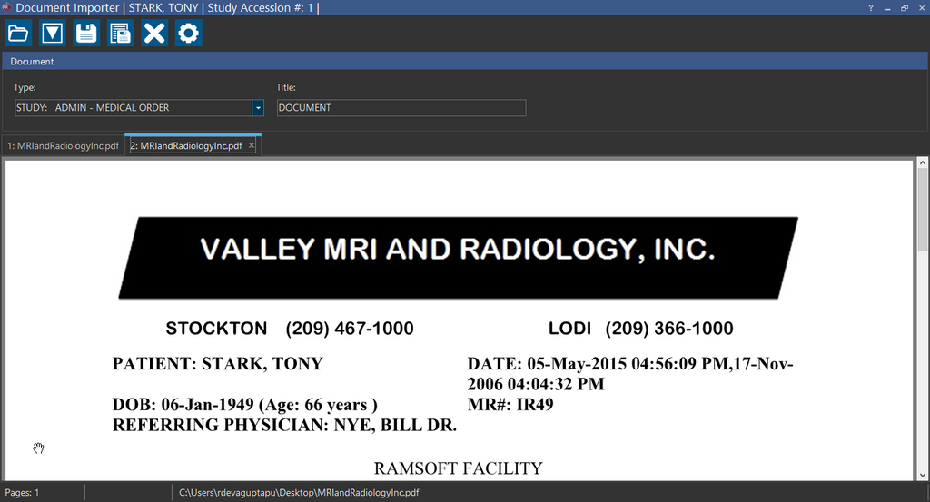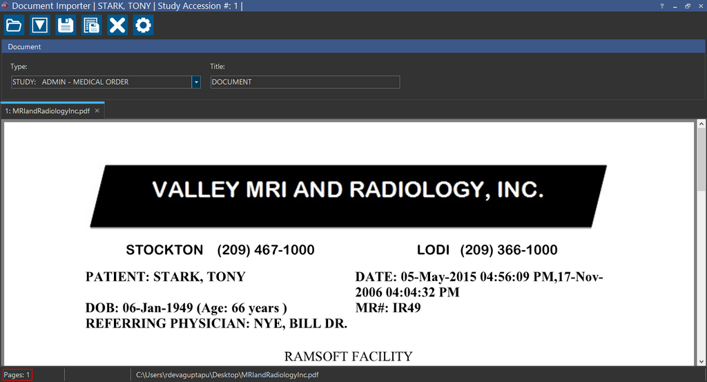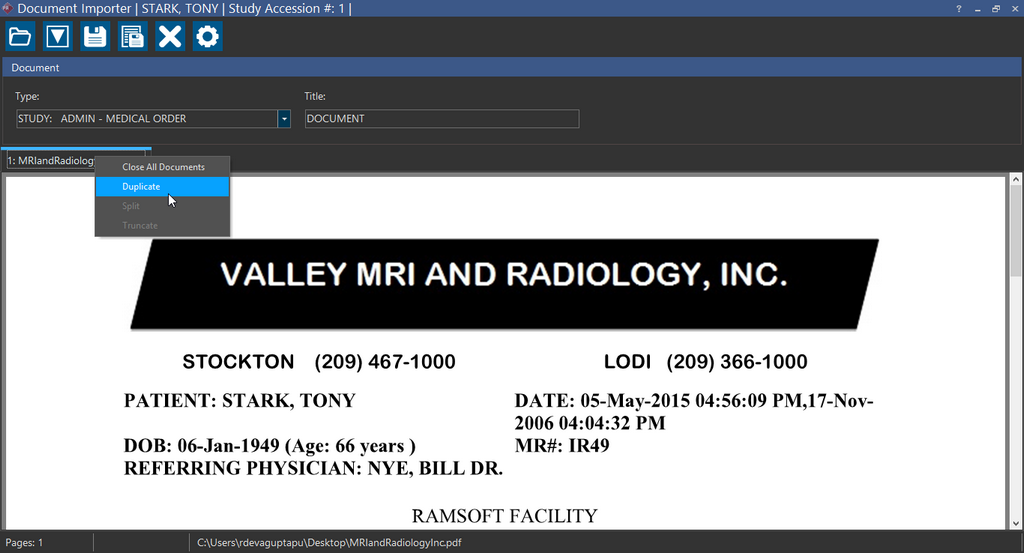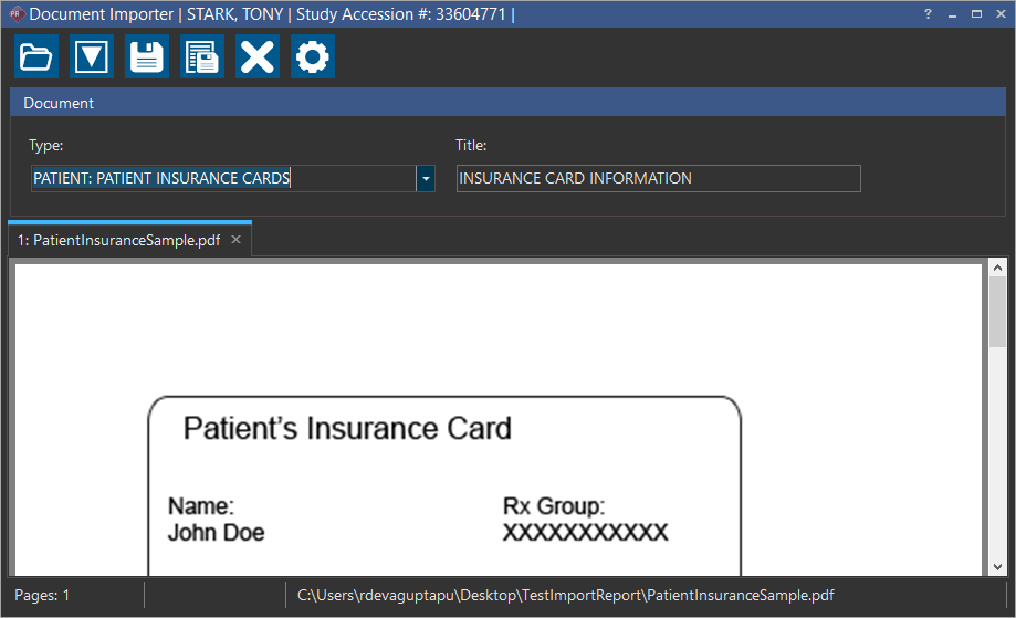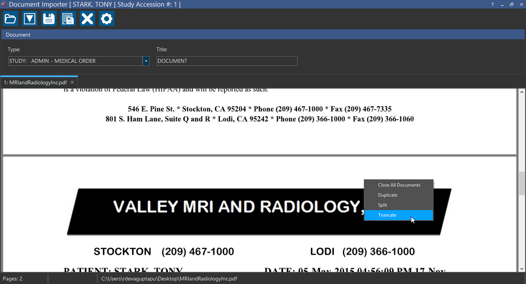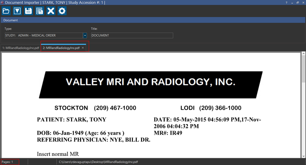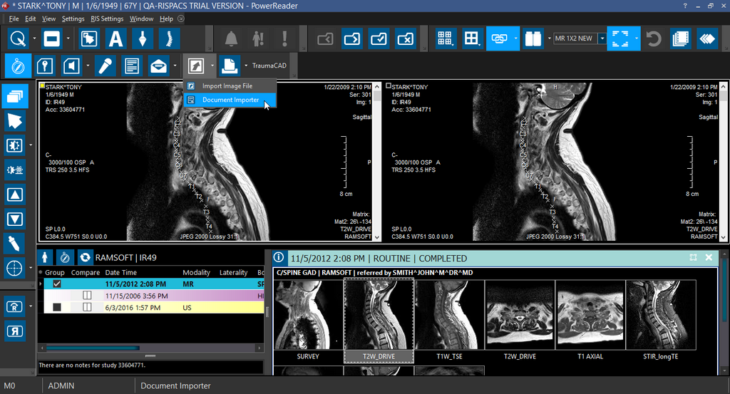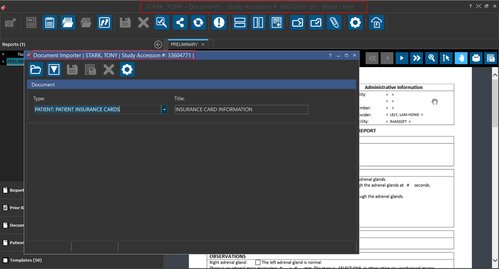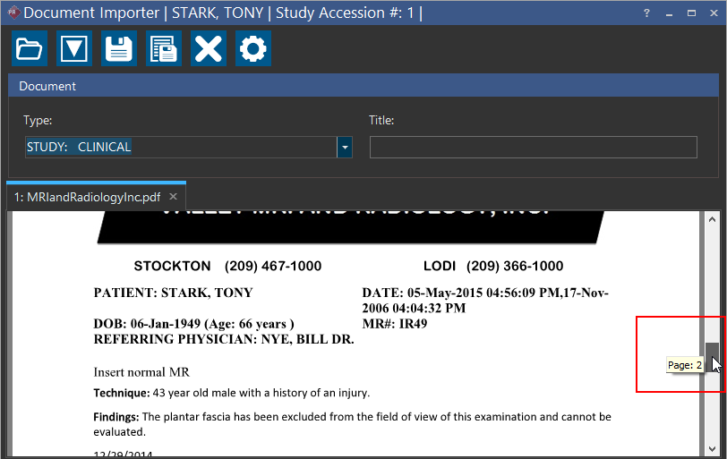 Tool in the Document Viewer. Notice that Document Importer contextually recognizes the study. Using this feature increases your productivity and efficiency as you do not have to launch the Document Importer and scan the document again.
