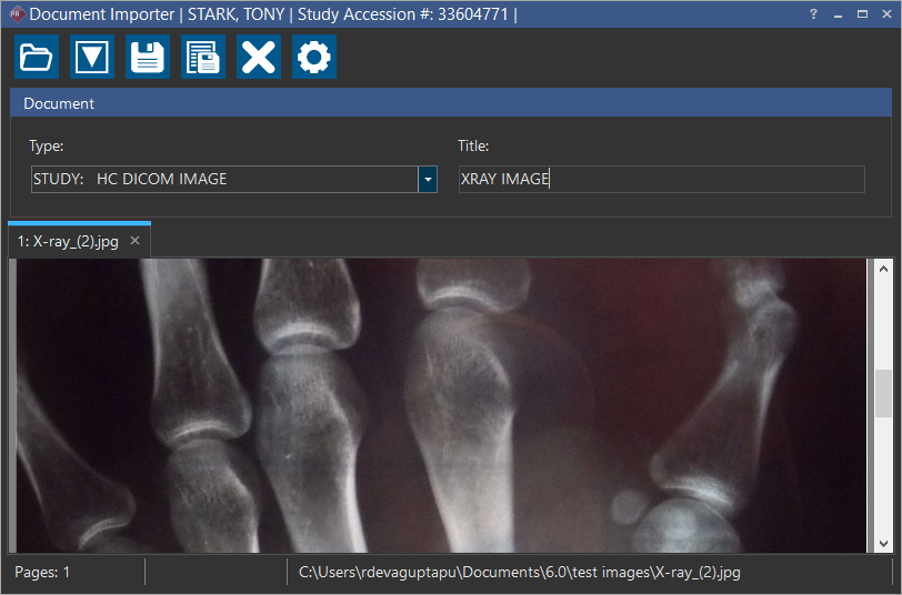 Select the relevant Document Type as STUDY: HC DICOM IMAGE and enter the Title for the image.