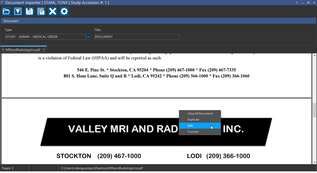 Apart from Scanning and Attaching studies, you can also manipulate the PDF documents in Document Importer.