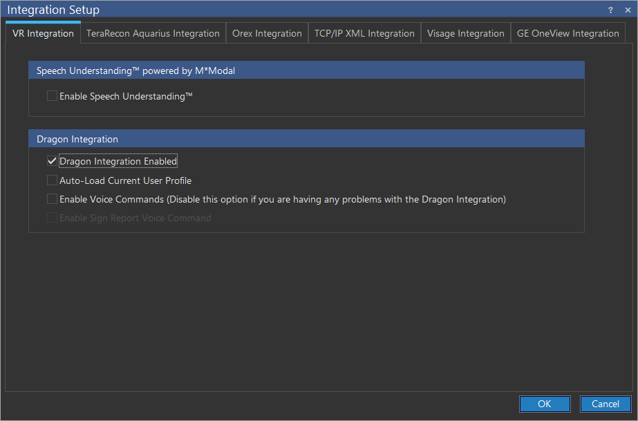 Ensure that Dragon Integration Enabled has been checked.