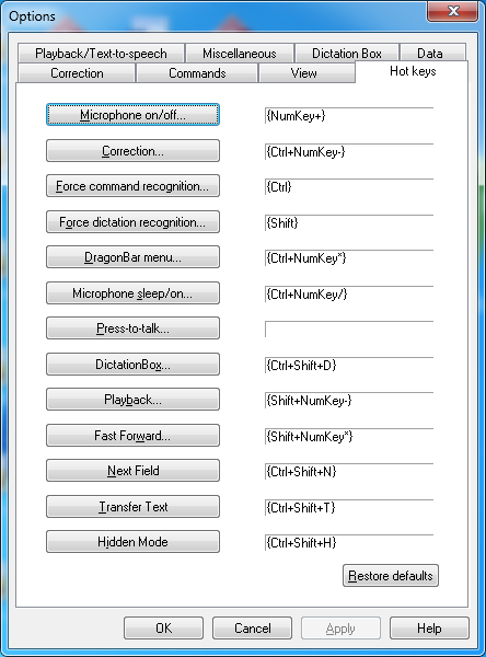 The keys defined on the Dictaphone PowerMic II are different than the ones used by the Philips SpeechMike. Therefore, step-by-step macros have to be defined by the user to move to the next/previous field.