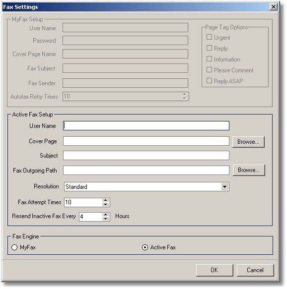 - Click on the Active Fax radio button at the bottom of the fax settings form to select it as the default fax server.