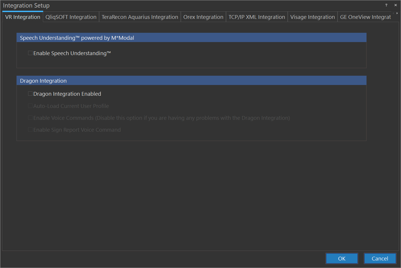 If Dragon is enabled, Uncheck it. (This setting is used for Dragon NaturallySpeaking & not Dragon Medical One)