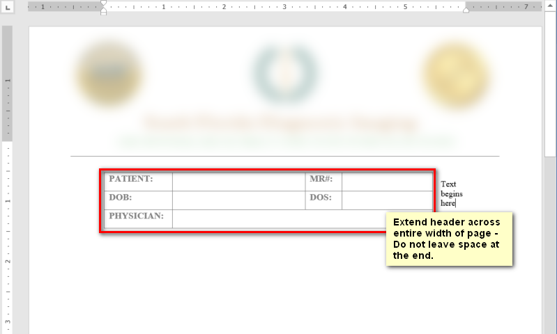 When creating headers, extend the header across the entire width of the page. Do not leave spacing at the end of the page.