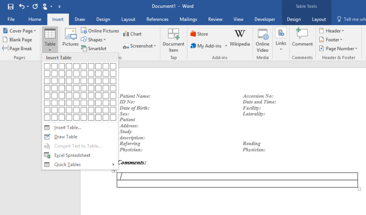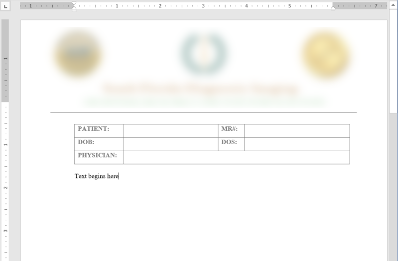 Structured report templates can be created with Microsoft Word. The templates can contain graphics and logos as well as Bookmarks that are used to automatically port DICOM information and images into the reports.