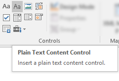 2. On the Developer tab, in the Controls group, click Rich Text Content Control or Plain Text Content Control .