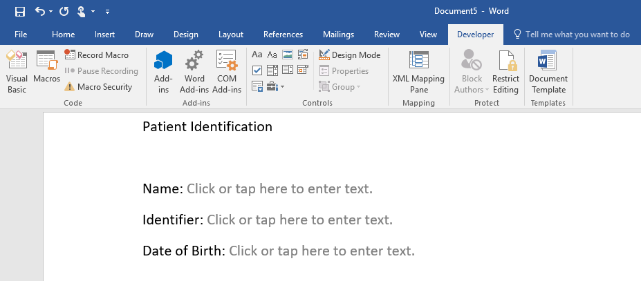 NOTE: You can print a form that was created with content controls; however, the boxes around the content controls will not be printed.