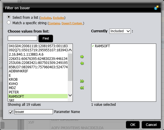The user chooses the issuer of data as displayed below. The application searches for data provided by the issuer.