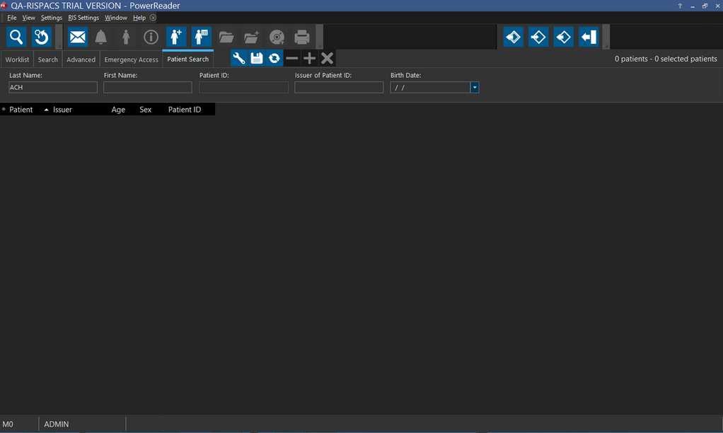 This feature has a patient search mechanism. The patient search screen can be accessed from the PowerWorklist.