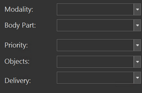 The Modality and Body Part fields may be used to determine the types of studies that the Worklist will display. These drop-down menus allow for the selection of multiple items simultaneously. The Priority field limits the studies of the Worklist on the basis of the priority they have. Choosing a value for Objects will only display studies that contain a desired DICOM object such as an SR Report. The Priority and Objects fields will also allow for the concurrent selection of multiple values. The Delivery drop-down menu will allow the user to filter the Worklist on the basis of the method of delivery used for the studies such as CD, Film, Courier, Fax etc.