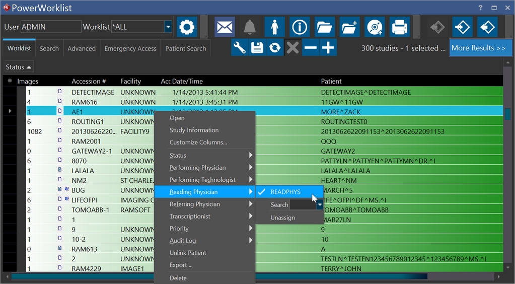 - Assign the same Performing Physician, Performing Technologist, Reading Physician, Referring Physician and Transcriptionist to all the selected studies.