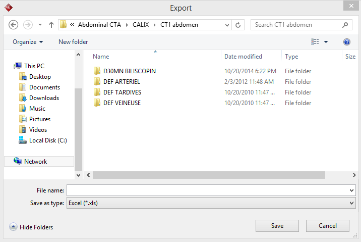 An Export window is displayed. Select the location and name of the file. Click Save.