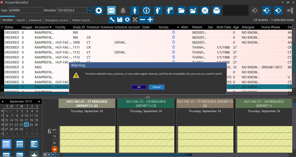 There might be instances when you have many columns selected for display on a Worklist. A warning message is displayed in this case. You can cancel the print and select only the most relevant columns and print again or go ahead and view the print preview.