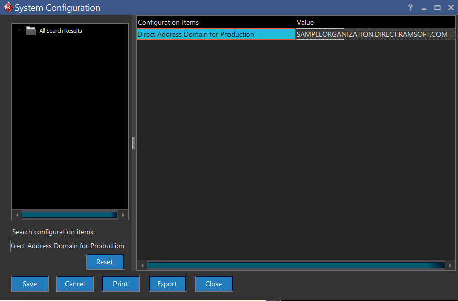 - The Domain Name, i.e. "org.direct.ramsoft.com", where "org" is the name of the organization. Domain Names must be unique.