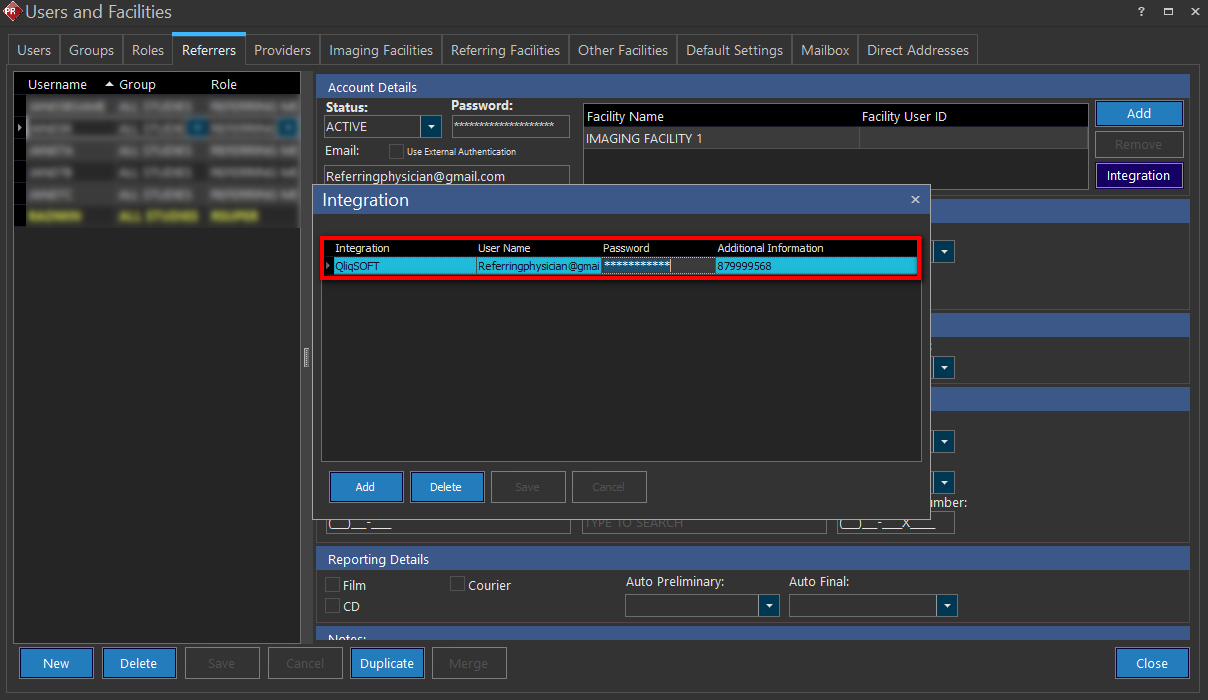 The QliqSOFT password can be changed under Users and Facilities by navigating to Integration -> QliqSOFT -> Password. Administrators can change their own and other user's passwords. If Qliqsoft logs the user out of the application after the password change, relaunch QliqSOFT with the following methods: